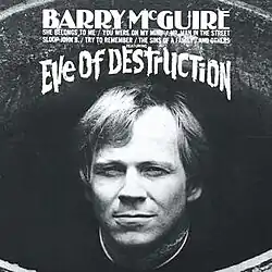 Eve of Destruction is the debut studio album released by American folk music singer-songwriter Barry McGuire, released in 1965. The album features McGuire's signature song "Eve of Destruction", written by P.F. Sloan, who also wrote many other songs on the album. It also features McGuire's cover versions of songs by several artists, including Bob Dylan.[1] Eve of Destruction peaked at No. 37 on the Billboard 200 album chart and spent a total of 21 weeks on the chart.[3]