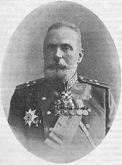 Evgeny Aleksandrovich Radkevich (Russian: Евгений Александрович Радкевич; 16 September 1851 – 1930) was an Imperial Russian Army general of the infantry and a member of the Military Council. He saw combat during the Russo-Turkish War of 1877–1878 and the Russo-Japanese War and served as a commander of Russian field armies during World War I.