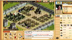The player sets tax rate, production, and construction. Resources include gold, food, lumber, stone, iron, and the city's idle population. As with similar games, the player first must increase the city's population and hourly resource production rates and construct certain buildings in the city, and then start building resource fields and an army. An army can include siege machines, such as ballistas, catapults, and battering rams, and foot troops, such as archers, warriors and swordsmen.[6]