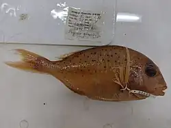 - ^ Christopher Scharpf (12 January 2024). "Order ACANTHURIFORMES (part 6): Families GERREIDAE, LETHRINIDAE, NEMIPTERIDAE and SPARIDAE". The ETYFish Project Fish Name Etymology Database. Christopher Scharpf. Retrieved 26 January 2024.
