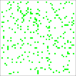 • Refractory — the cell has recently been excited and is temporarily not excitable. This corresponds to a patch of land where the trees have burnt and the vegetation has yet to regrow.