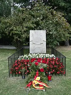 During exhumation work carried out after the war, employees of the Polish Red Cross and the District Commission for the Investigation of German War Crimes found human remains in the basements of the General Inspector of the Armed Forces building. These were placed in 76 coffins[38] and buried at the Warsaw Insurgents Cemetery. The authors of Powstanie Warszawskie – rejestr miejsc i faktów zbrodni (Warsaw Uprising – Register of Places and Facts of Crimes) were able to identify only 38 names of those murdered during the executions in the police district.[39] One of the victims was likely the famous pre-war clairvoyant Stefan Ossowiecki.[40]