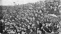 Club chairman Michael McGahey, directors Fred Parkhouse and George Middleweek (who paid for his own trip) and their wives, and fifteen players set sail in May 1914. Manager Arthur Chadwick was too ill to join the party, hence why McGahey travelled.[3] The boat trip to Argentina lasted three weeks, stopping off at Vigo, Madeira, Rio de Janeiro, Santos and Montevideo along the way. Yellow fever prevented passengers from landing in Recife and Salvador da Bahia.[1]