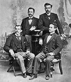 Costa Rica delegation in the 1897 Central American Expo1. From left to right: Carlos Bolio Tinoco, Luis Loria, Genero Castro and Anastasio Alfaro.[10]