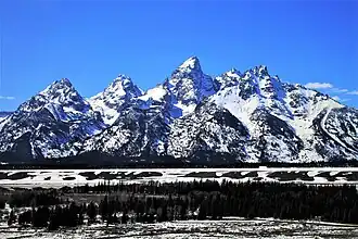 The artwork for Ye was revealed by Kardashian to have been taken by West on his iPhone on their way to the listening party on May 31, 2018, hours before the release of the album. It features a view of the Teton Range from Jackson Hole, the mountain range where the album was recorded and produced.[89] The mountainous terrain photographed is natural, though it is questionable whether the artwork includes a skyline or not within the area that the terrain is present on it.[90] The text on the artwork reads: "I hate being / Bi-Polar / its [sic] awesome," which is scribbled in neon green over the mountain range.[89] With the inclusion of the phrase on the artwork, West confirmed his bipolar disorder.[28]