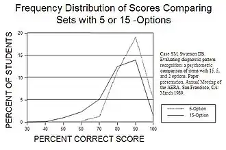 Sources suggest using a minimum of eight answer options to a ratio of five scenarios or vignettes to ensure that the probability of getting the correct answer by chance remains reasonably low.[1] The exact number of answer options should be dictated by the logical number of realistic options. This ensures that the test item has authenticity and validity.
