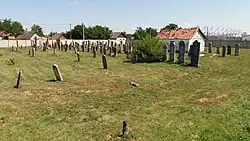 In 1871, after the Orthodox Judaism had been separated, Földes remained an Orthodox community. In 1873, Mór Fischer had a licensed Jewish private school, while at the same time József Goldstein and Jacob Glück were not allowed the teaching in their schools with Jewish religion. In 1876 the community founded elementary school with 1 teacher and 80 students. The teacher had not had a qualification from the National Israelite Teachers College[33] and the school had to be closed. In 1883, the school had been re-opened with the certified Ferenc Fischer teacher who remained in Földes until 1901. In the elementary school, cheder (religion teaching) was held in a separate room that the melamed (religion tutor) taught. In 1903, 60 Jewish traders and craftsmen were registered in the Debrecen Chamber of Commerce and Industry.[34] In 1913 the elementary school moved to a new, hygienic building.[30][31] In 1914 it had 60 students. In the World War I (1914–18), 50 members of the community participated and six lost their lives. In the 1920s Jewish youth played an active and prominent role in the local sport life. Football (soccer) was built primarily on them. The Nyúl brothers had played in the MTK[35] and they also got to the Hungary national team. In 1929[30][31] the members of the community were 253 people, the number of families was 60, and the tax was paid by 55 people. By occupation: 1 teacher, 34 merchants, 15 artisans, 1 entrepreneur. The Talmud Torah and the yeshiva religious schools were active, the elementary school had 35 students. The rules of operation of Chevra Kadisa[36] were approved by the Interior Ministry in 1898. They spent 9% of the budget of the community for charitable purposes. Sáp and Tetétlen also belonged to Földes's register. After the outbreak of the World War II, 65 men had been called in a labor service that 33 survived. In 1944, after the occupation of Germans, 214 Jews were included in the list. Földes Jews had been transported to the Püspökladány ghetto on 19 May 1944 and by the end of June they were transported to Debrecen. The train fittings were launched in Auschwitz on the 25th from the Debrecen brick factory.