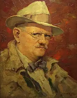 Weber remained active as an artist throughout his employment with F. Weber & Co. A member of the Art Club of Philadelphia, Weber submitted a self-portrait for the club's 46th annual exhibition. The painting was notable for its exclusive use of paints made with synthetic resins.[8] During the Second World War, Weber visited Philadelphia-area hospitals with other portraitists to sketch wounded soldiers, drawing the men in uniform and omitting their scars and wounds.[9][10] In 1952, Weber was commissioned to paint a portrait of Temple University president Robert L. Johnson.[11]