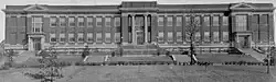 The cornerstone was laid on November 3, 1917, with the ceremony being presided over by mayor Benjamin Bosse. The original two-story and basement building was opened in September 1918.[4] Evansville High School was renamed Evansville Central to reflect the opening of the new school. Reitz graduated its first senior class in 1921. That same year, the 10,000-seat (now 12,000-seat) Reitz Football Stadium (locally known as the Reitz Bowl) was completed on the side of a natural slope next to the school.[5]