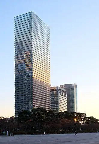 The FKI Tower also known by its full name Federation of Korean Industries Head Office Building is a skyscraper on Yeouido island in Seoul, South Korea. It was designed by the American architectural firm Adrian Smith + Gordon Gill Architecture. Construction started in 2010 and was completed in 2014. At 245 meters (804 ft) high, it is amongst the tallest buildings in South Korea and the 5th tallest building in Seoul. The building was awarded the 2015 Building of the Year award by American-architects.com[2]