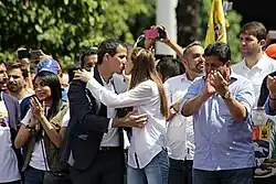 During the Venezuelan presidential crisis, Guaidó was designated acting president by the Venezuelan National Assembly, contesting the legitimacy of Nicolás Maduro.[6] More than 50 governments have recognized Guaidó as the acting president of Venezuela,[13][14] which implicitly gives Rosales a claim to being the First Lady of Venezuela.[2][6][15] She told Reuters that spies and "pro-government armed groups" follow her and Guaidó.[11]