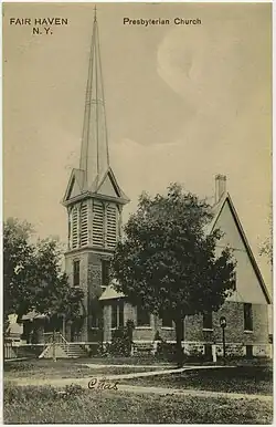 The Presbyterian church, whose brick building of 1882 replaced a former building destroyed by fire, was united with the local Methodist church in 1928.[2] It is now the Fair Haven Community Church.