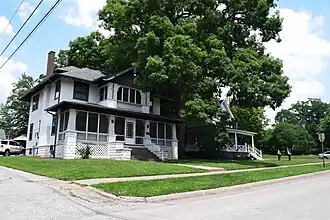 The Fair Oaks Historic District is a nationally recognized historic district located in Muscatine, Iowa, United States. It was listed on the National Register of Historic Places in 2020.[1] At the time it was studied for the Muscatine Historic Preservation Commission it contained 231 resources, which included 176 contributing buildings and 55 non-contributing buildings.[2] Dr. James Weed was an early settler in Muscatine. He married Mary Swift in 1847, and the couple settled a farm on the northeast side of town where they built a Gothic Revival house from 1852 to 1854 (a contributing building). The couple donated 63 acres (25 ha) of wooded land on the east side of their property along the Mississippi River for a community park. Along the southern and western edges of their property, they plated subdivisions and eight houses had been built by the time of Mary's death in 1908.[2] The rest of their property was opened up for development at that time and it was given the name Fair Oaks in a city-wide contest. It was divided into 101 lots. There were 57 houses in the subdivision by 1919, and 25 houses and a grocery store were built in the 1920s. Between 1930 and 1944 another 15 houses were built, 11 houses between 1945 and 1954, 13 houses between 1955 and 1965, and four houses since 1965.