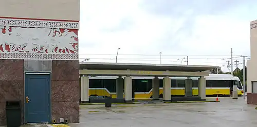 In 1997, DART began preliminary studies for light rail service to the South Dallas area, including Fair Park, which would be opened between 2003 and 2008.[11] However, the project was delayed due to debates regarding the Deep Ellum and Love Field stations on the line.[12][13] Construction of the line ultimately began in June 2006[14] with a planned completion date of 2009.[15] Construction was temporarily halted during the 2007 and 2008 fair seasons.[16][17]