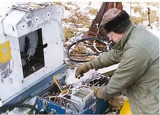 The device, developed by Martin Marietta, was the first commercially developed instrument of its kind deployed for unattended field use by the U.S. government. This use was cited in 1978 congressional hearings on potential uses for nuclear waste.[22] In 1981 two additional RTGs were added. All three RTGs were removed from the rock in 1995[23] in a joint Army/Navy operation with Chinook helicopters from B Company, 4th Battalion, 123rd Aviation Regiment, the "Sugar Bears"[26] of Fort Wainwright, AK.[27] The three RTGs were transported from Fort Wainwright, AK to the Richland Consolidation Facility at Hanford Nuclear Reservation in Washington state for disposal.[23][28][29][30]