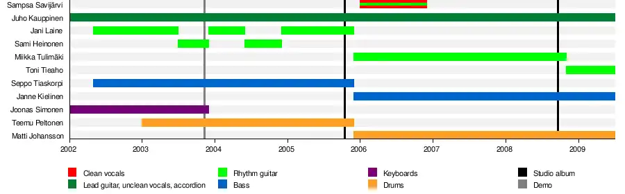• Juho Kauppinen − unclean vocals, lead guitar, accordion (2002-2009)