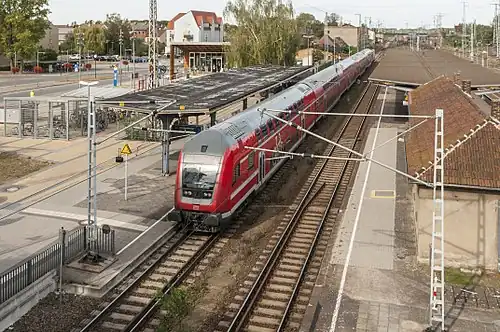 In 2010 and 2011, the passenger platforms were built in the upper part of the station and the railway facilities were transformed. The former Mitropa building was completely rebuilt. The upper railway yard was taken over in 2011 by BLG AutoRail, which uses it as a "hub for car transportation by rail".[16]