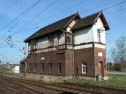 The town of Falkenberg has been decisively shaped by the railways. In the first years, the station of Falkenberg was only a minor station as the town had developed very little at this time. Immediately prior to the construction of the railway, Falkenberg had 350 inhabitants, while it had 405 at the time of the opening of the east–west line.[17] With the construction of the east–west line and the later line from Wittenberg to Kohlfurt Falkenberg, it became a railway junction and the village grew considerably. A number of railway workers settled in the city. The area between the railway station and the old town centre was gradually built up. The post office was opened next to the entrance building in 1888.