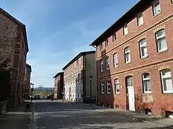 From 1897, a cooperative built, with the help of a loan, tenement-like houses in several streets west of the station; these included stables, a little garden land and community laundry rooms.[18] This area is now a heritage-listed area as the Eisenbahnersiedlung Falkenberg (Falkenberg railway settlement). In 1912, the manor came into the possession of the municipality, allowing new construction areas to be identified, mainly east of the railway. In the 1920s, more apartments were built and by 1925 Falkenberg had become the largest town in the former district of Liebenswerda with 4,850 inhabitants.[18]
