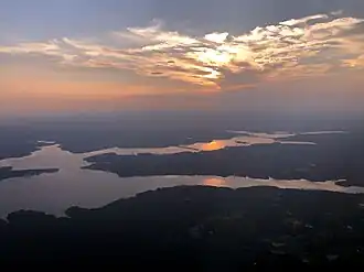 Falls Lake is a 12,410 acre (50 km2) reservoir located in Durham, Wake, and Granville counties in North Carolina, United States. It extends 28 miles (45 km) up the Neuse River to its source at the confluence of the Eno, Little, and Flat rivers, and has a shoreline of 175 miles (280 km).