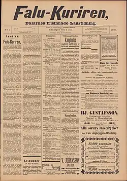 Falu-Kuriren was established by Waldemar Skarstedt in 1894.[1][2] The paper has its headquarters in Falun and its political stance is independent liberal (Swedish: oberoende liberal).[1] It is published in tabloid format.[3] In 2008, it was acquired by Mittmedia,[4] and is fully owned by the company.[5]