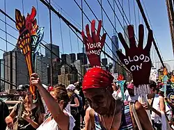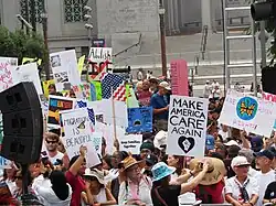 Many of those protesting in June 2018 had participated in previous anti-Trump protests and actions, while others were new to immigration activism, with parents who felt called into action based on the reported stories of separations.[8] Protesters at the events in June 2018 participated in both major cities and also more rural regions like Appalachia and Wyoming. Protests were also held internationally.[4] Some protesters compared the detainment of children by the U.S. government to the Nazi concentration camps.[9][10]