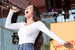 Faouzia cites her parents and sisters as her biggest influence in pursuing a music career.[4] She grew up listening to pop musicians Rihanna, Lady Gaga, Ariana Grande, Beyoncé, Sia, Adele,[50] Kelly Clarkson,[46] and John Legend.[51] About Rihanna, she said "has always been an inspiration of mine growing up and still to this day."[52] Faouzia added that she, Beyoncé, Lady Gaga, and Sia are her major influences as a songwriter.[50] She told that "Say Something" by A Great Big World featuring Christina Aguilera and "Hello" by Adele are some of her favourite songs.[4] At a young age she listened alongside her parents to Arab music acts such as Umm Kulthum and Fairuz.[20] Faouzia declared they "are two of my all-time favourite artists."[6] She also listened to Assala Nasri and Khaled.[53] When she was learning music she listened to composers Chopin, Bach, and Mozart.[20] Pop rock bands Fall Out Boy and Imagine Dragons have also served as influences for her,[20] and she attended one of the latter's concerts.[7]