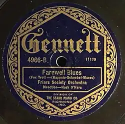 "Farewell Blues" is a 1922 jazz standard written by Paul Mares, Leon Roppolo and Elmer Schoebel.