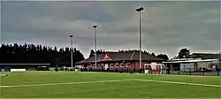 Farley Way Stadium is an association football stadium located in Quorn, Leicestershire, England. It is home to both Quorn F.C.[1] of the Southern League Premier Division Central.[2] Opened in 1994 the ground has a capacity of 1,400[3] and has a 400-seater cantilever stand running along one side of the pitch[4] and a covered terrace at one end. It was renovated in 2018 with standing surfaces renewed, new perimeter fences put in and a new stand built. Running parallel to the main pitch is a full-length, slightly narrow, training pitch.
