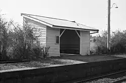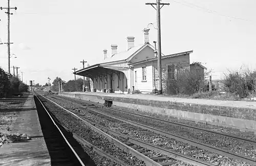 ![]() Eastbound view showing station building before demolition | |||||||||||