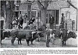 In 1910 Thomas J. Brundage's son, Oscar G. Brundage, who took over the general store decided to build an additional store, this time made of brick. It was completed in December 1910. He continued working in the stores at least until the late 1920s. Later it became Dixon's Grocery Store, owned by Floyd Dixon. After that, it became Ryan's Grocery Store. In the 1940s it became a bar called the Frontier Club. It was finally destroyed in a fire in the 1960s. It sat on the Southeast corner of Visalia Rd and Farmersville Blvd, where Rainbow's Drive In sits today.