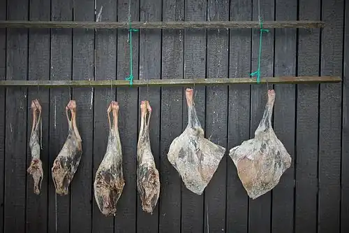 Much of the taste of this traditional country food is determined by the food preservation methods used; brine, drying, and the maturing of meat and fish, called ræstkjøt and ræstur fiskur.[2][3]