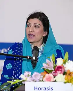 In 2012, she was inducted into the federal cabinet of Prime Minister Yousuf Raza Gilani without portfolio[6] and was give the status of a federal minister.[1] She was retained in the federal cabinet of incoming Prime Minister Raja Pervez Ashraf.[1][7]