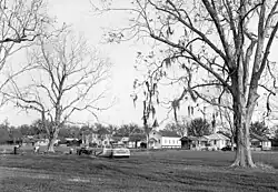 Multiple structures in the village were built using a narrow, rectangular architectural style popularized after the Civil War, which was known as the shotgun house.[10] Individual rooms were placed behind each other, one after another, between a front and rear door, giving rise to the description that a bullet fired from a gun at a home's front door would be able to travel straight through to the back door without hitting anything in between.[11]