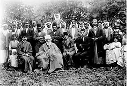 Front row (L to R) : Sobhi, 'Abdu'l Baha's Secretary, 'Abdu'l Baha, Jalal Azal and Aziz'u'llah Bahadur[1]