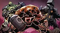 In Iron Man 2.0, War Machine, Prince of Orphans, Iron Fist, and the Immortal Weapons fight Skirn, and witness Absorbing Man as he is transformed into Greithoth: Breaker of Wills.[48][49][50][51]