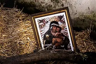 Due to the deterioration of the original painting, the image was reproduced on canvas and placed in this purpose-built church, namely the Shrine of Our Lady of the Hens.[5][7][3]