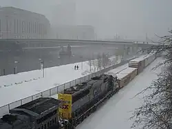 The February 9–10, 2010 North American blizzard was a winter and severe weather event that afflicted the Midwest, Mid-Atlantic and New England regions of the United States between February 9–11, 2010, affecting some of the same regions that had experienced a historic Nor'easter just three days earlier. The storm brought 10 to 20 inches (25 to 51 cm) of snow across a wide swath from Washington, D.C., to New York City, with parts of the Baltimore metro area receiving more than 20 inches (51 cm).[1] This storm began as a classic "Alberta clipper", starting out in Canada and then moving southeast, and finally curving northeast while rapidly intensifying off the New Jersey coast, forming an eye. The National Weather Service likened this storm to a Category 1 hurricane: "Winds topped 58 mph over part of the Chesapeake Bay, and 40 mph gusts were common across the region as the storm's center deepened and drifted slowly along the mid-Atlantic coast". The storm system, in conjunction with the earlier storm, has been nicknamed "Snoverkill."