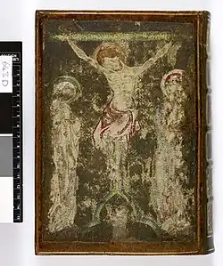 The Felbrigge Psalter is an illuminated manuscript Psalter from mid-13th century England that has an embroidered bookbinding which probably dates to the early 14th century. It is the oldest surviving book from England to have an embroidered binding.[1] The embroidery is worked in fine linen with an illustration of the Annunciation on the front cover and an illustration of the Crucifixion on the back.[2]