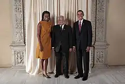 Feleti Sevele with US president Barack Obama and First Lady Michelle Obama in September 2009