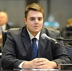 Francischini was elected with about 36,000 votes to the Legislative Assembly of Paraná in 2014, despite the fact that he had no political experience and had just graduated from university.[3] In the 2018 Brazilian general election, Francischini and his father switched roles, with Felipe running for his father's seat in the national legislature and Fernando running for his son's seat in the lower legislature. Reasons for the surprise move were mused by the media, ranging from Fernando Francischini wanting to spend more time with his other son who has autism, or Filipe's political ambitions, or the fact that Fernando wants to eventually run for mayor of Curitiba.[3] In the 2018 election Francischini received 241,537 votes or 4.21% and was elected to the federal chamber of deputies.[4]