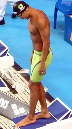 Felipe Ferreira Lima (born 5 April 1985) is a Brazilian swimmer.[2] He has six medals in World Championships: two in long course, and four in short course, highlighting his bronze medal in the 100 metre breaststroke at the 2013 World Championships. At the 2012 Summer Olympics, he competed in the men's 100 metre breaststroke, finishing in 8th place in his semi-final and failing to reach the final.[3]