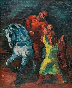 In early 1924, Harta returned to Vienna, and in March he exhibited twenty-four oil paintings and thirty-seven graphics in the Künstlerhaus of the Cooperative of Fine Artists in Vienna. At the same time, he became a member of the Hagenbund. Harta participated in many of their exhibitions and served on many of the executive and hanging committees. In June 1928, the Hagenbund presented a themed show on the 'Family', including a collection of 36 oil paintings by Harta that received favorable reviews.[21] He designed the posters for the 1931 European Plastik Exhibition and the 58th and 66th Hagenbund Exhibitions. From 1929–31, he served as the Secretary, and functioned as the Vice President in 1932 and 1933. This period is also filled with many exhibitions throughout Europe. Recent research into the Hagenbund Network shows that Harta was one of only twelve artists that most often exhibited in the Hagenbund between 1930 and 1938.[22]