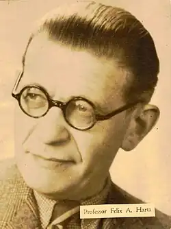 1. ^ a b c d e f g h i j k Edith K. Baumgartner, Felix Albrecht Harta (1884–1967). Doctoral thesis, supv. Monika Oberhammer, Franz Fuhrmann, Univ. Salzburg, 1991. Catalogued at "bibliography compiled by Christoph Tepperberg" (PDF). oesta.gv.at For access information see Austrian State Archives