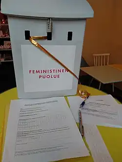 - ^ "Kuntavaalit 2017" (in Finnish). Feminist Party. Archived from the original on 9 April 2017. Retrieved 8 April 2017.