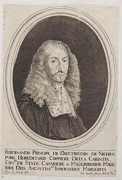 Ferdinand Joseph, Prince of Dietrichstein (25 July 1628[1] – 1 December 1698), was a German prince member of the House of Dietrichstein, 3rd Prince (Fürst) of Dietrichstein zu Nikolsburg, Princely Count (gefürsteter Graf) of Tarasp, Baron (Freiherr) of Hollenburg, Finkenstein and Thalberg; in addition, he served as Lord Chamberlain (Obersthofmeister), Conference Minister (Konferenzminister) and Privy Councillor (Geheimrat) of Emperor Leopold I, and Knight of the Order of the Golden Fleece since 1668.