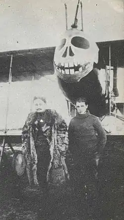 On 20 May 1916, Jacquet's gunner was Louis Robin. The Belgian duo fought meeting engagements with German floatplanes both morning and evening. In the evening battle, they took on half a formation of ten enemy planes, and sent one down for Jacquet's second confirmed win.[8] There followed a string of unconfirmed claims, on 26 and 27 May and on 22 June.[6] On 23 June, the Belgian Farman F.40 with the ghoulish insignia of a skull painted on the nose scored again, destroying a Fokker. Over the next month, the two Belgians rampaged, claiming two more wins that went unconfirmed, dropping flechettes on a German observation balloon, and strafing the Germans at Gistel. On the afternoon and evening of 30 July, Jacquet and Robin clashed with a series of Germans, being credited with an LVG destroyed. Their probable victim was Oberleutnant Franz Walz, who was downed with severe wounds that day.[8]