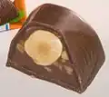 Ferrero Küsschen (meaning little kisses) are Ferrero company chocolates that consist of a whole roasted hazelnut filled with hazelnut cream including vegetable oil and covered in milk chocolate.