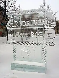 The snow sculpture that won the 1971 event was of a pair of boots and a toque. This sculpture inspired the creation of a mascot, Léo La Tuque, who was introduced in 1972 and became the trademark of Festival du Voyageur.[3]