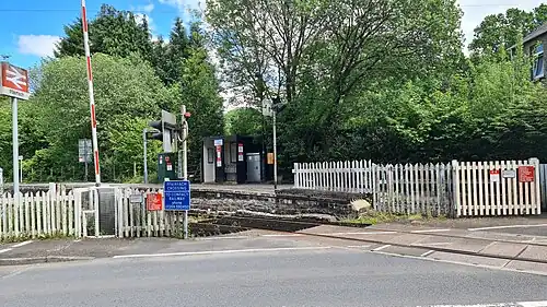 The station is unstaffed and has a basic range of amenities for passengers, including a small wooden waiting shelter, digital CIS display, timetable poster board and a customer help point. Tickets must be bought on the train or prior to travel. The route from the entrance to the platform has no steps, but is via a narrow gate and steep ramp – as such it is not recommended for use by disabled passengers without assistance.[2]